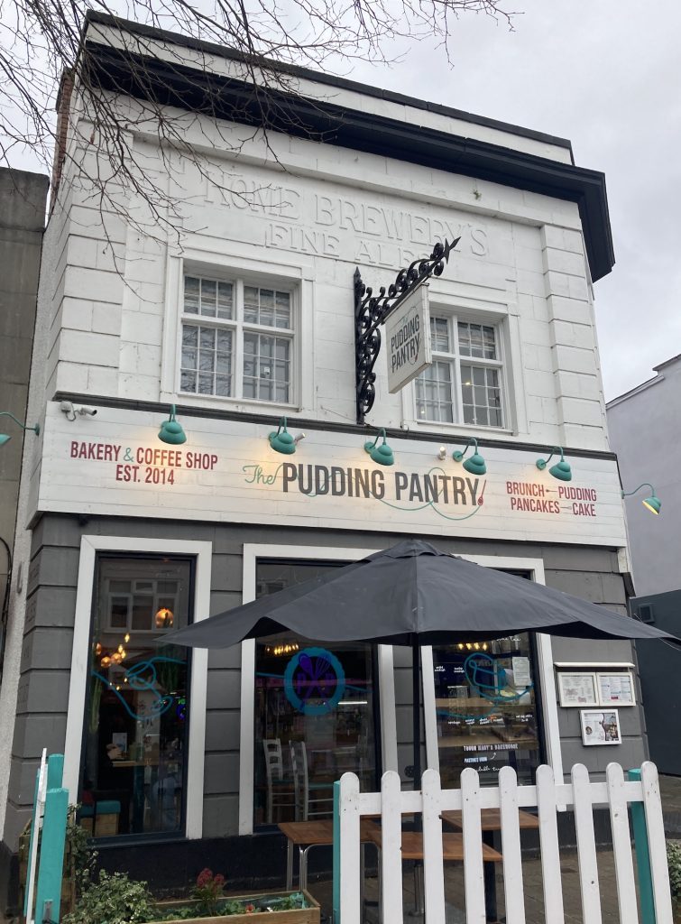 Further down the High Road, the familiar Home Brewery lettering on a white building caught my eye. The Pudding Pantry cafe was previously The Durham Ox pub.