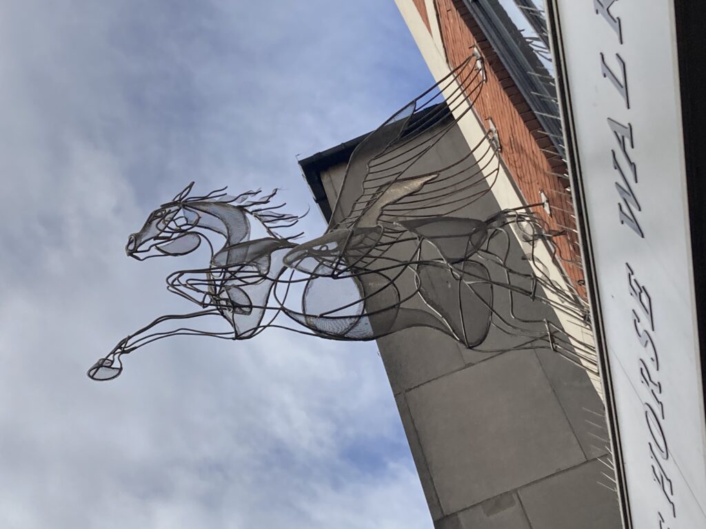 The facade remains as a listed building, but the majority of the building was modernised (and has been refurbished a couple of times since). The arcade was rebranded as FH Mall for a while, but was rebranded again as Flying Horse Walk in 2013 with the addition of Amy Goodman’s Pegasi sculptures. Currently, in 2026, the shops inside include The Cheese Shop, Vivienne Westwood, jewellery shops, hairdressers and art shops.