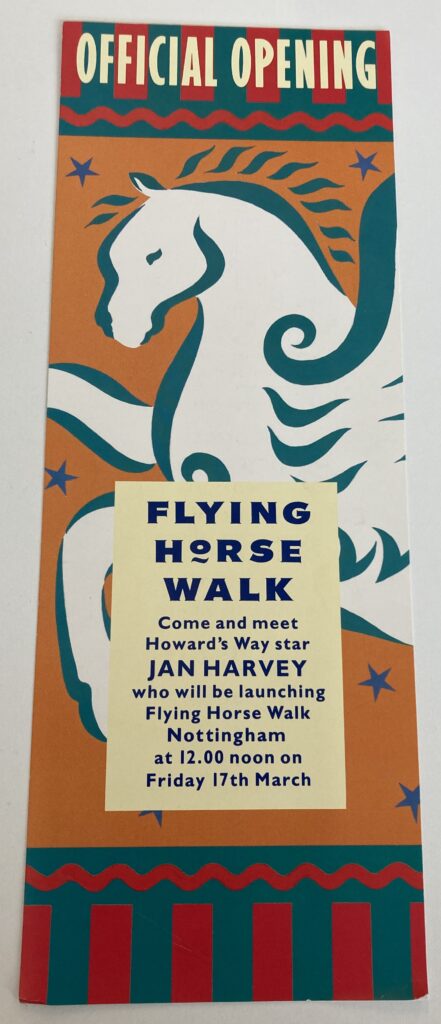 Flying Horse Walk Opening event, March 17 1988 (With thanks to Nottingham City Libraries Local Studies Dept.) (Actress Jan Harvey played a fashion tycoon in the BBC melodrama Howard’s Way, broadcast on BBC 1 at the time)